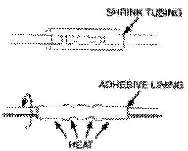 12. Use shielded heat gun to heat the repaired area until adhesive flows out of both ends of the heat shrink tubing.