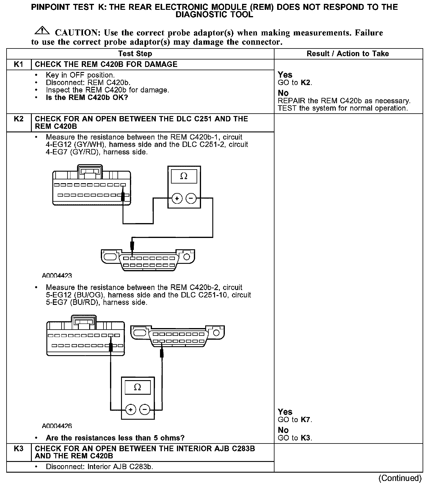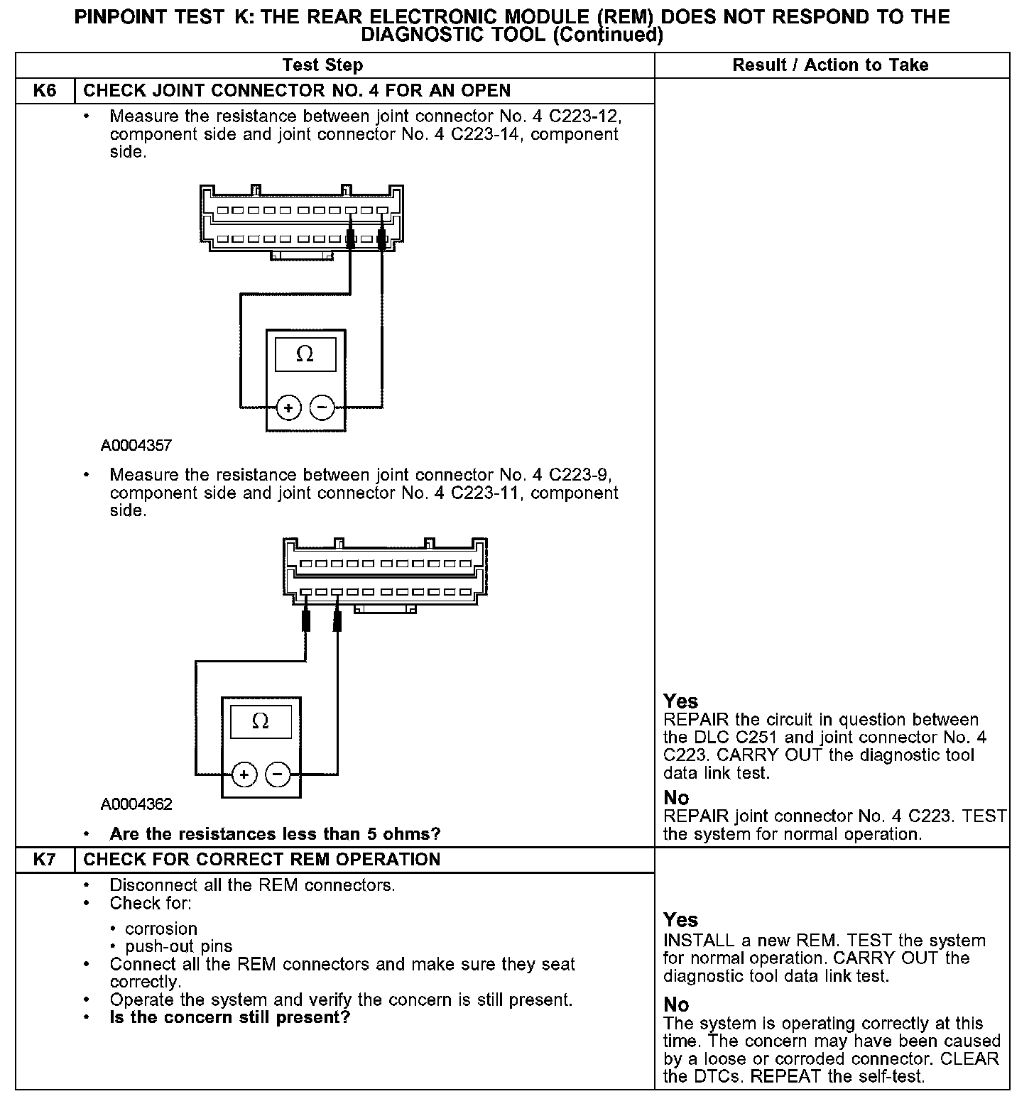 PINPOINT TEST K: THE REAR ELECTRONIC MODULE (REM) DOES NOT RESPOND TO THE DIAGNOSTIC TOOLK1-K3: