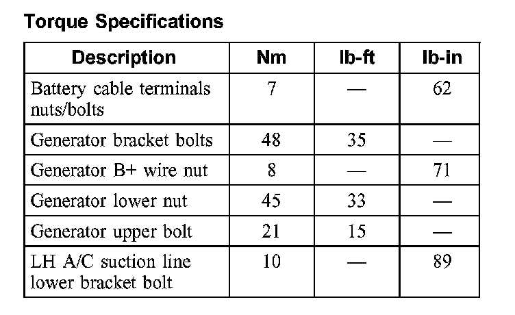 Torque Specifications: