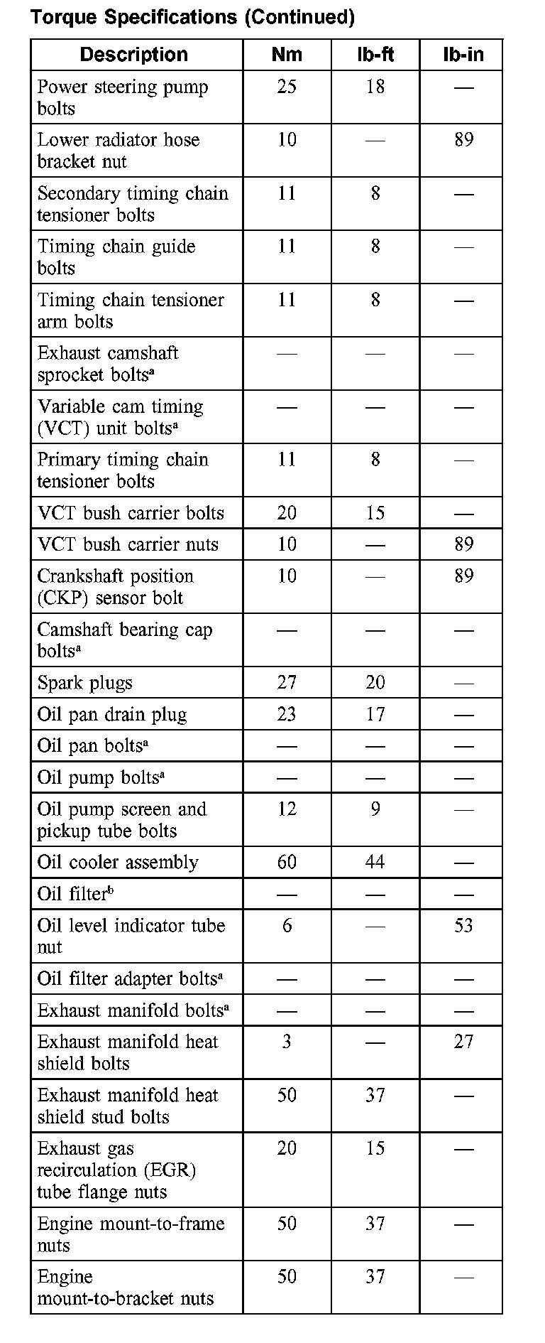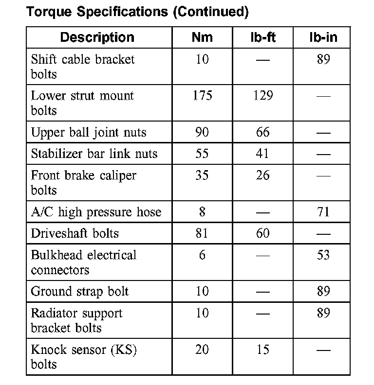 Torque Specifications: