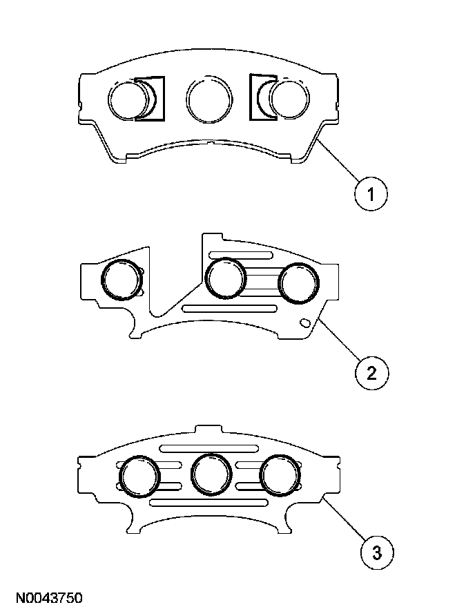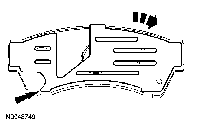 3. Apply grease that is supplied to the pad backing plate and shims in the areas indicated.