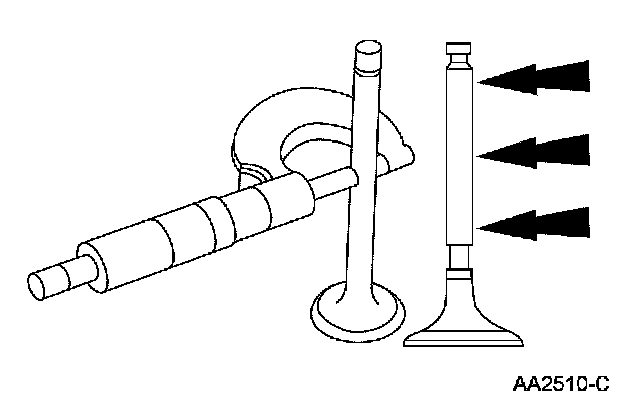 Valve Stem Diameter1. Measure the diameter of each intake and exhaust valve stem at the points shown. Verify the diameter is within specification.