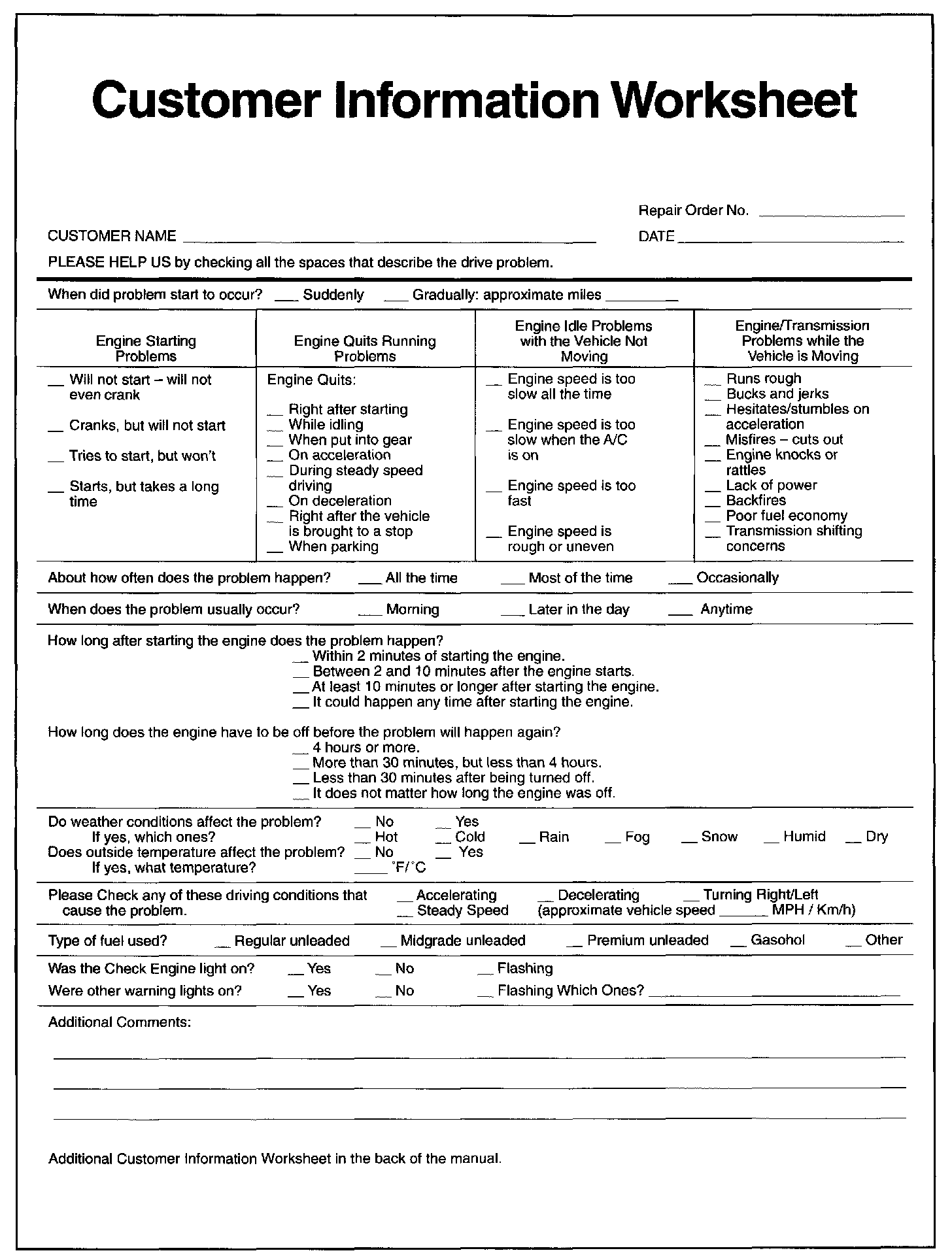Customer Information Worksheet