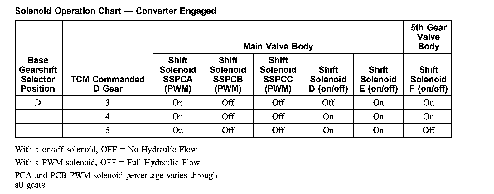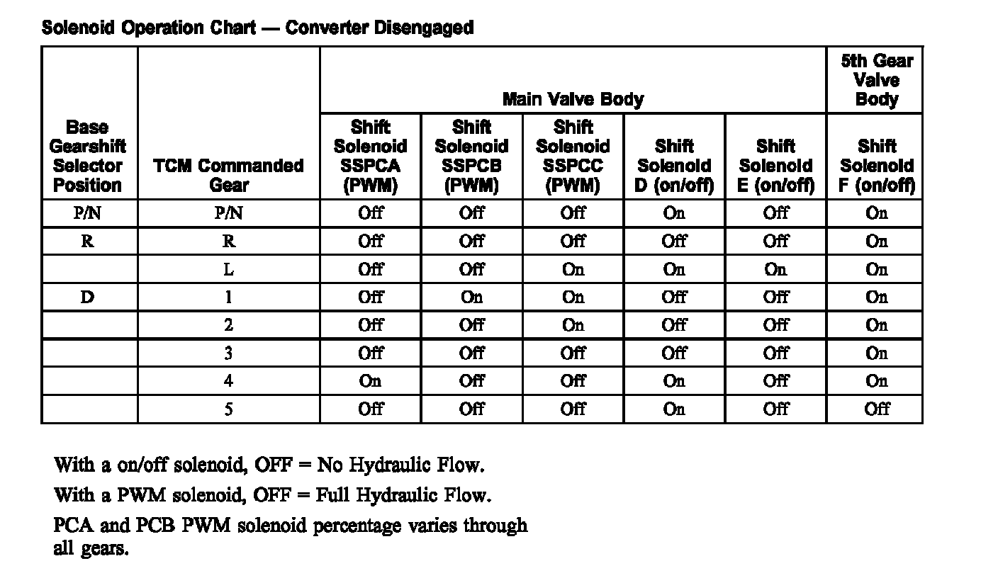 Solenoid Operation Chart - Converter Disengaged:
