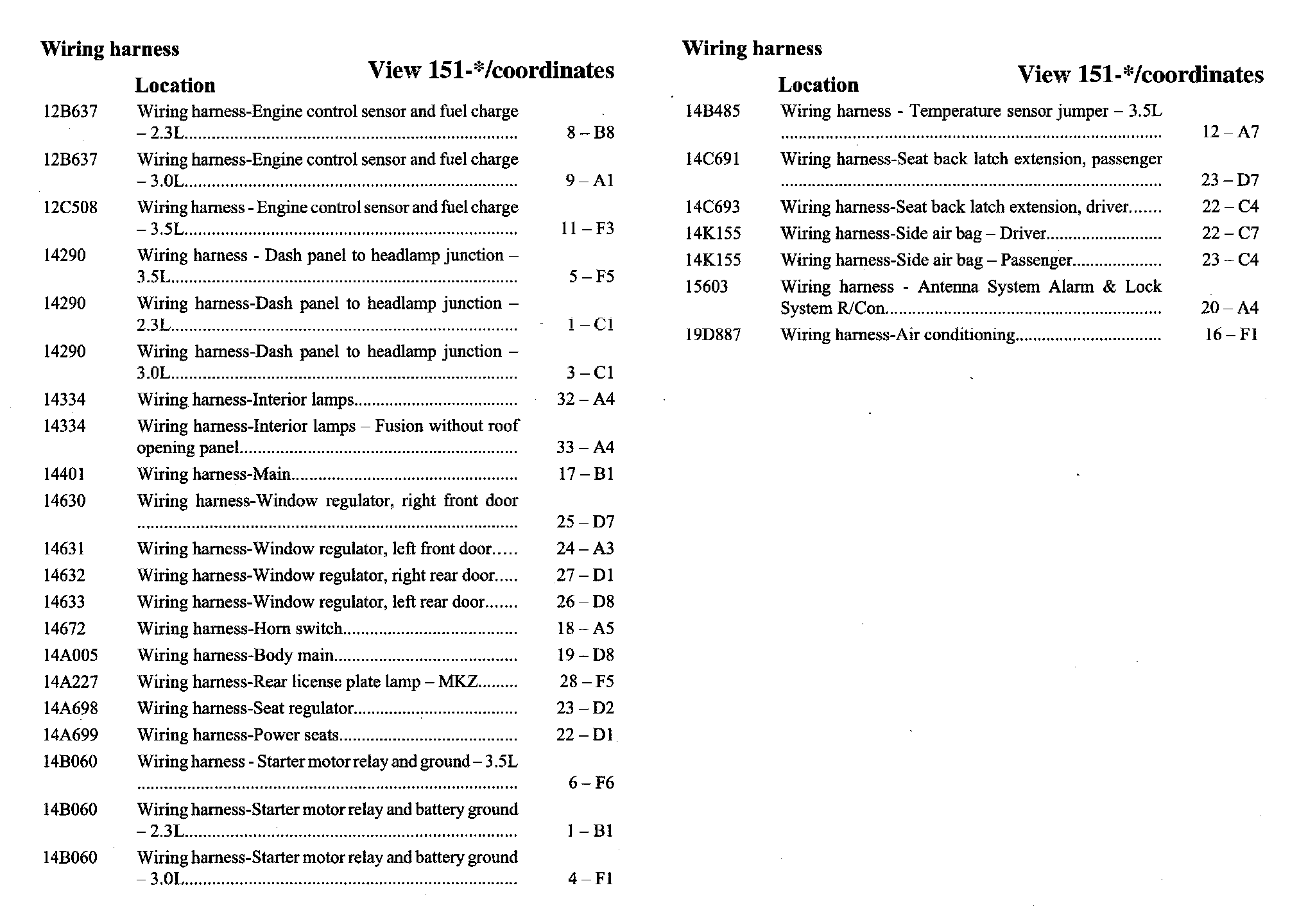 Harness Location Index