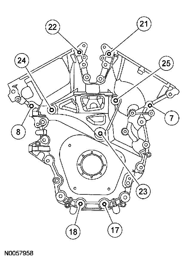 Install the engine front cover and bolts 7, 8, 17, 18, 21 and 22.