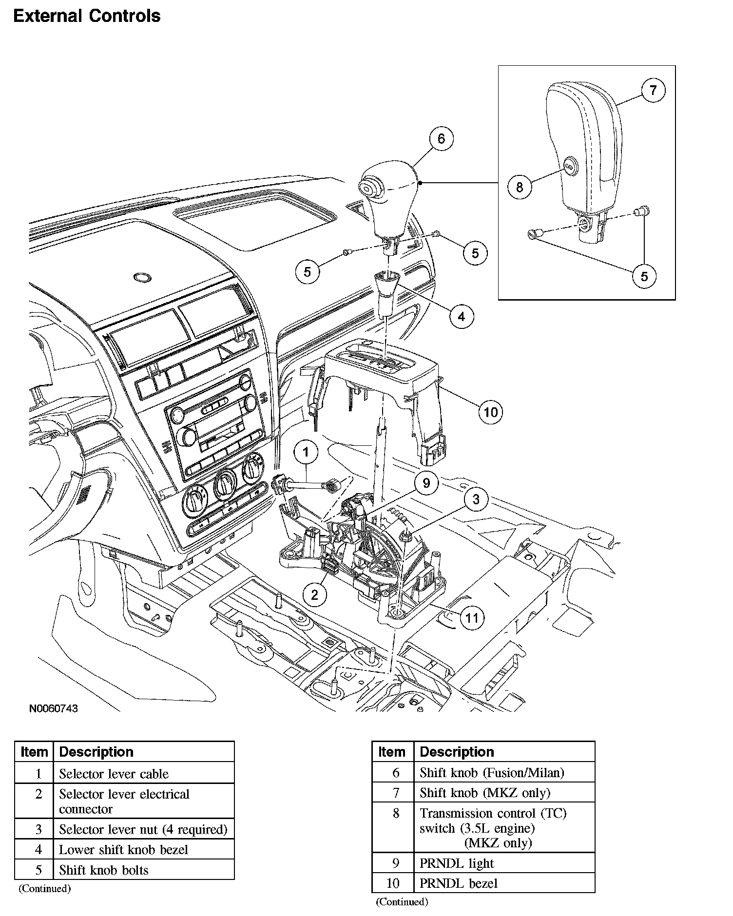 The MKZ transmission control (TC) switch is a momentary contact switch located on the selector lever knob that allows the driver to cancel the operation of OVERDRIVE.
