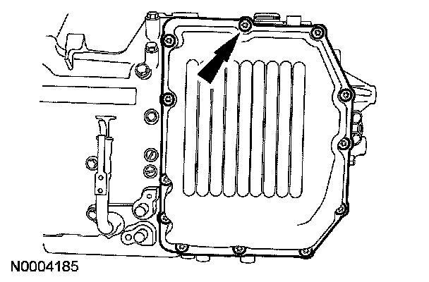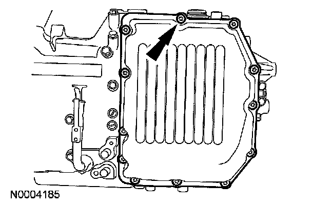 4. Remove and discard the transmission fluid pan bolts and remove the pan.