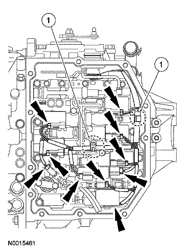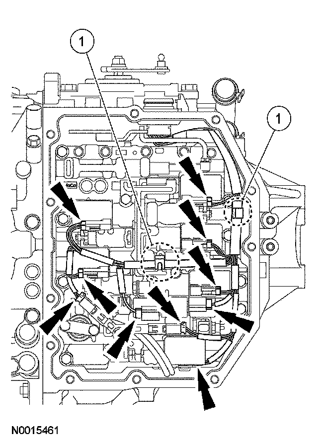 - Disconnect the 8 solenoid connectors and the 2 speed sensor connectors.