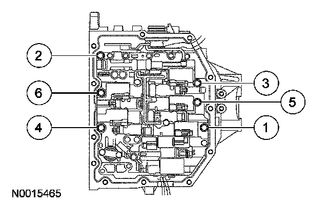 10. Remove the 6 main control valve body bolts in the sequence shown.