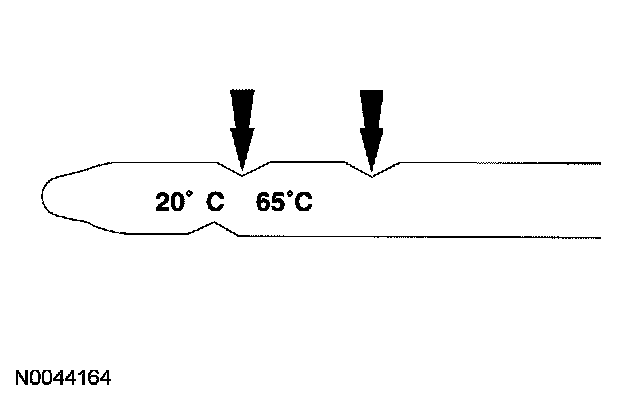 18. NOTE: In order to get an accurate fluid level reading, the vehicle should be on a level surface. Idle the engine to reach the normal operating temperature. Using the scan tool, verify that the transaxle is at normal operating temperature 60°C-70°C (140°F-158°F), prior to adjusting the transmission fluid level.