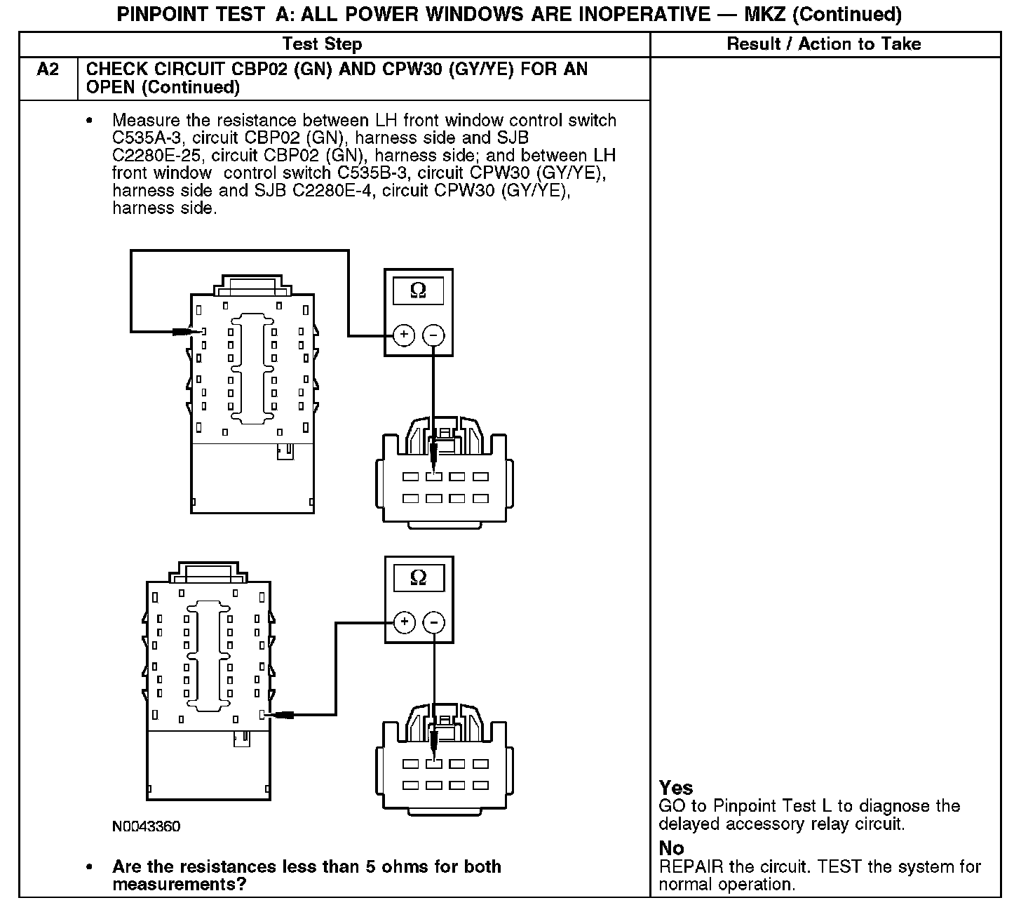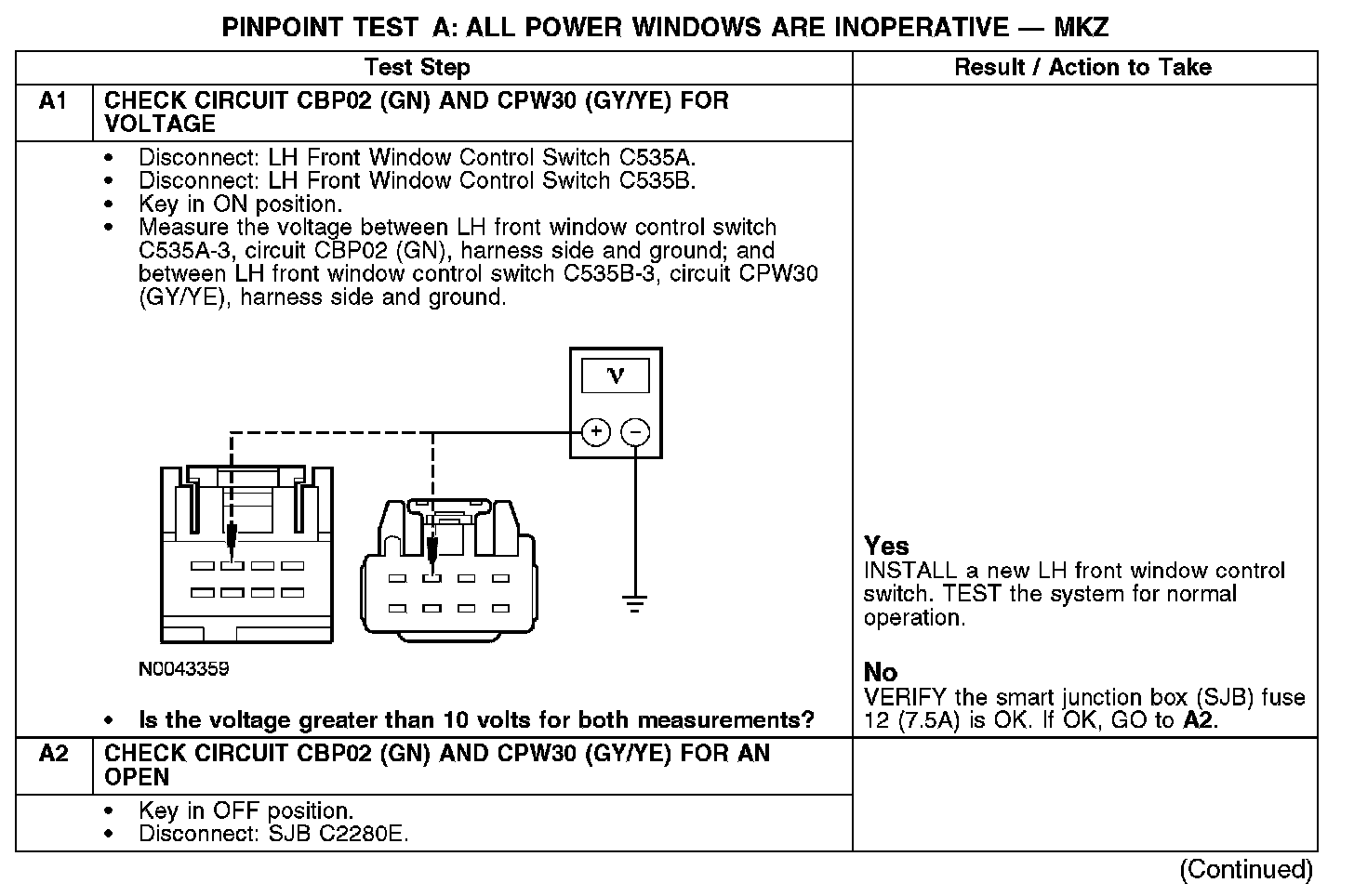 PINPOINT TEST A: ALL POWER WINDOWS ARE INOPERATIVEA1-A2: