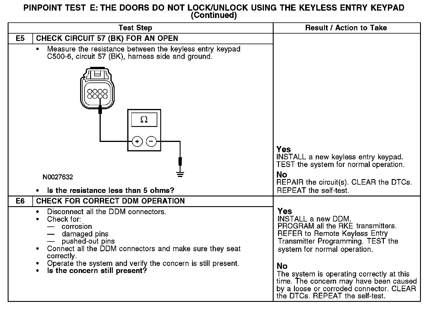 PINPOINT TEST E: THE DOORS DO NOT LOCK/UNLOCK USING THE KEYLESS ENTRY KEYPADE1-E4: