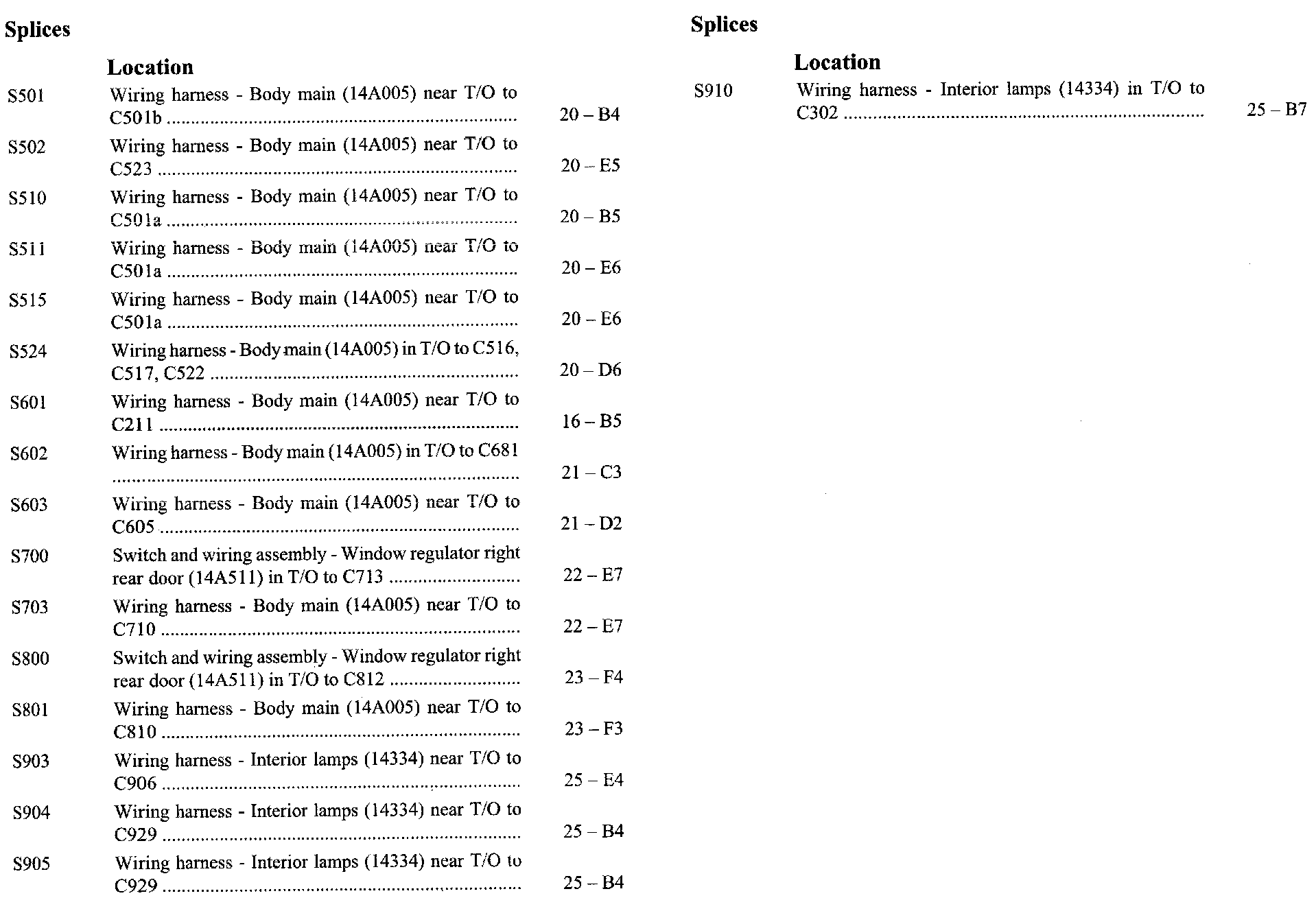 If a link on the Splices Location Index to a View is not provided, that means that the Splices and/or View in question does NOT apply to the vehicle model selected.