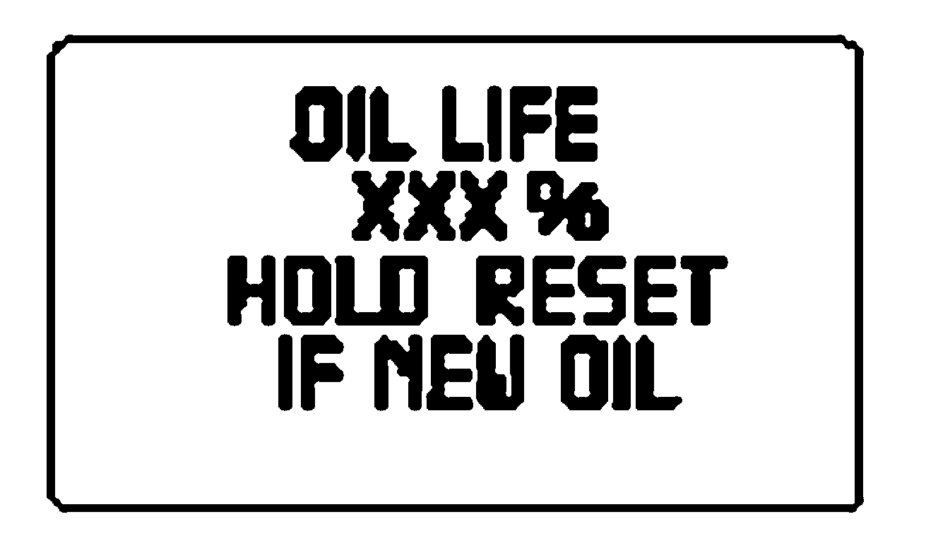 1. Press and hold the RESET control for 2 seconds and release. Oil life is set to 100% and OIL LIFE XXX% HOLD RESET IF NEW OIL is displayed.