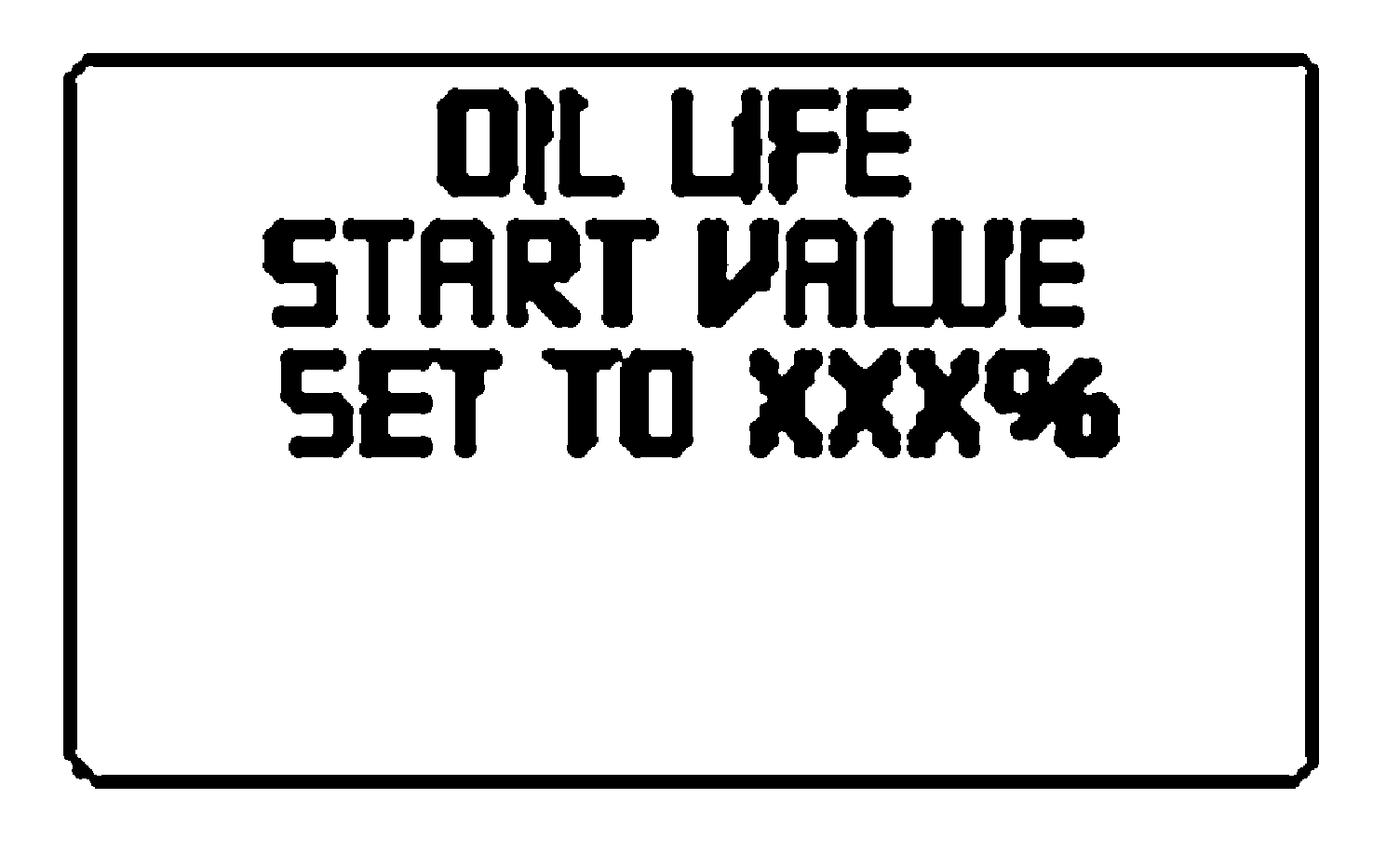 2. Press and hold the RESET control for 3 seconds and release. Oil life is set to 100% and OIL LIFE START VALUE SET TO XXX% is displayed.