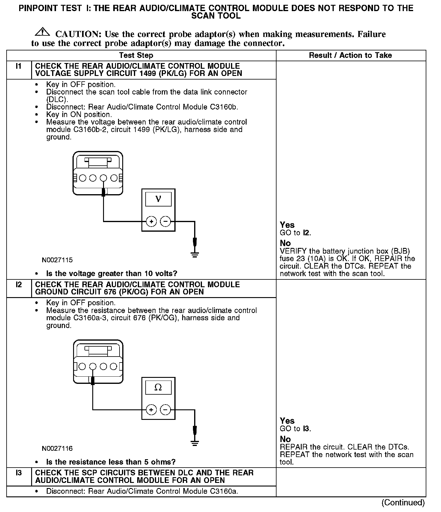 PINPOINT TEST I: THE REAR AUDIO/CLIMATE CONTROL MODULE DOES NOT RESPOND TO THE SCAN TOOLI1-I3: