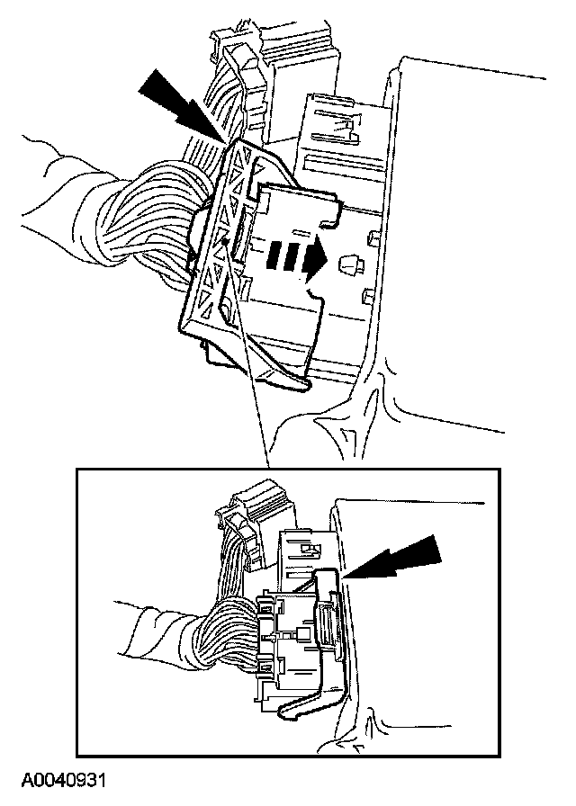 - Using the connector position assurance lever, pivot it toward the RCM, drawing the connector into the RCM.