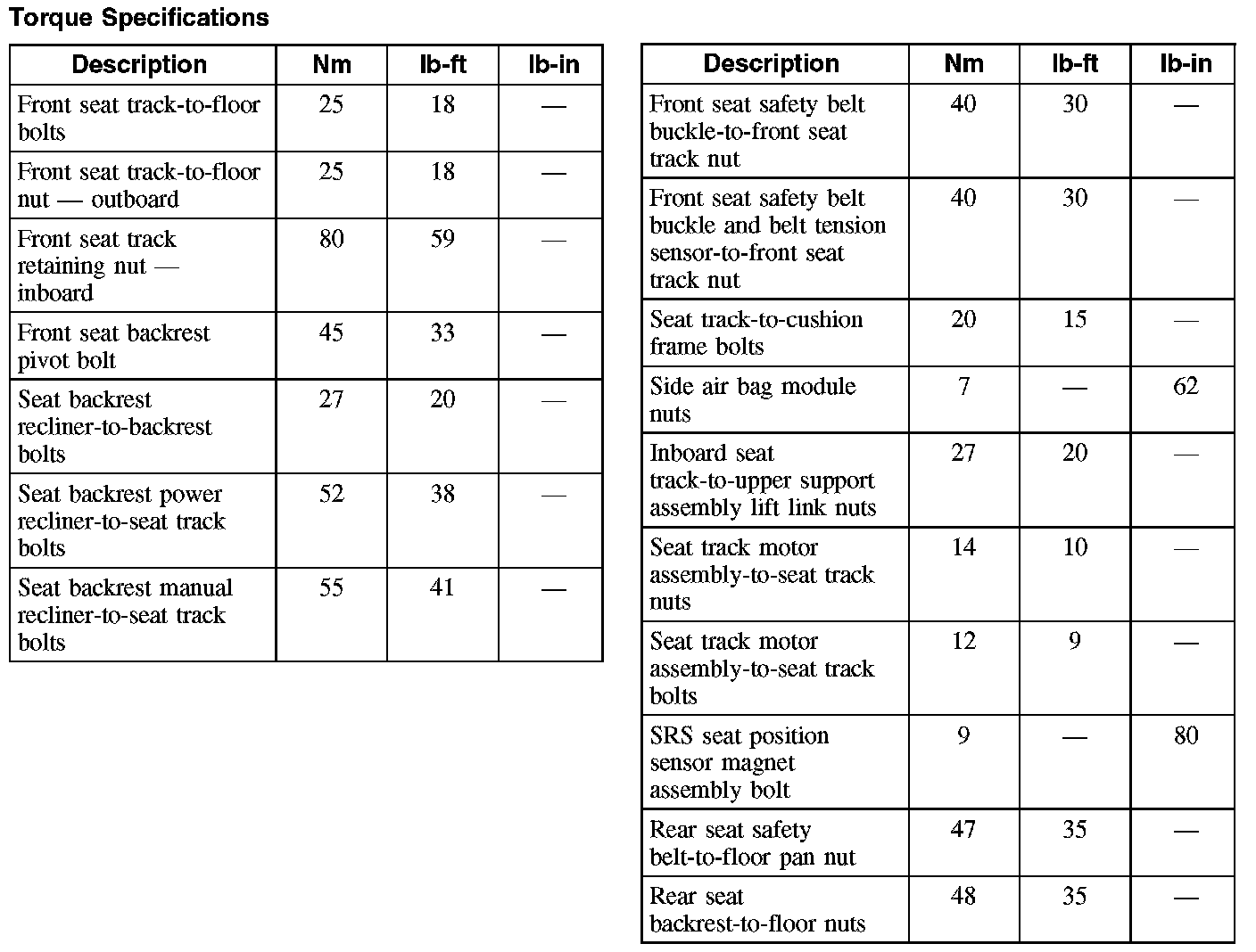Torque Specifications: