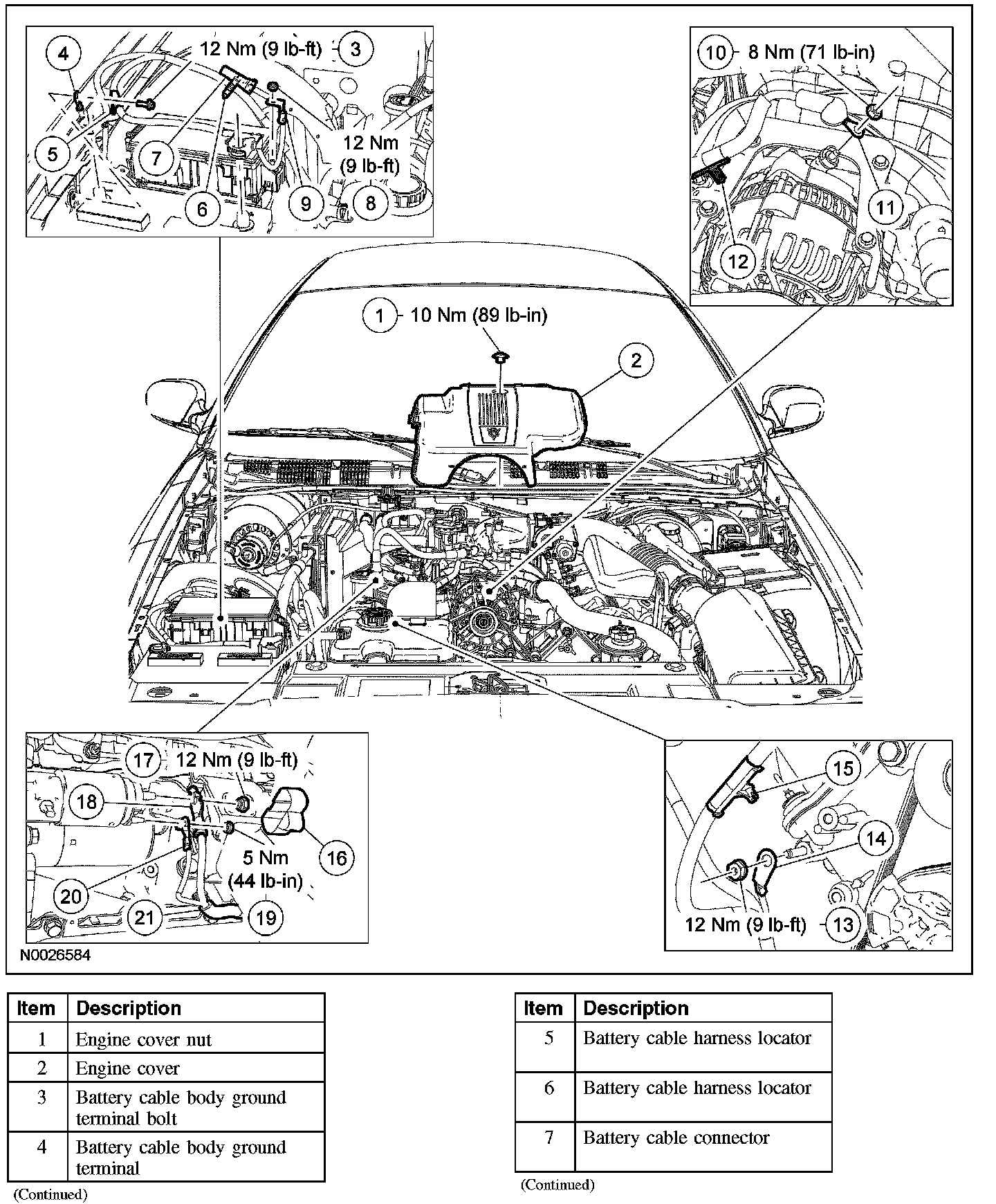 9. Remove the nut and position the battery cable engine ground terminal aside.