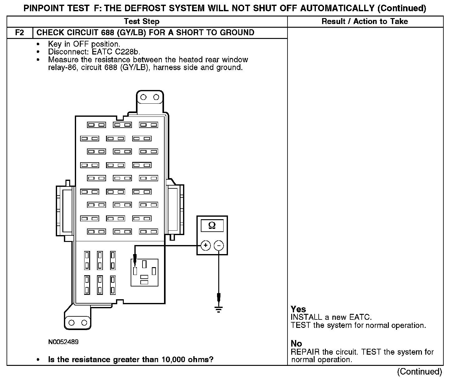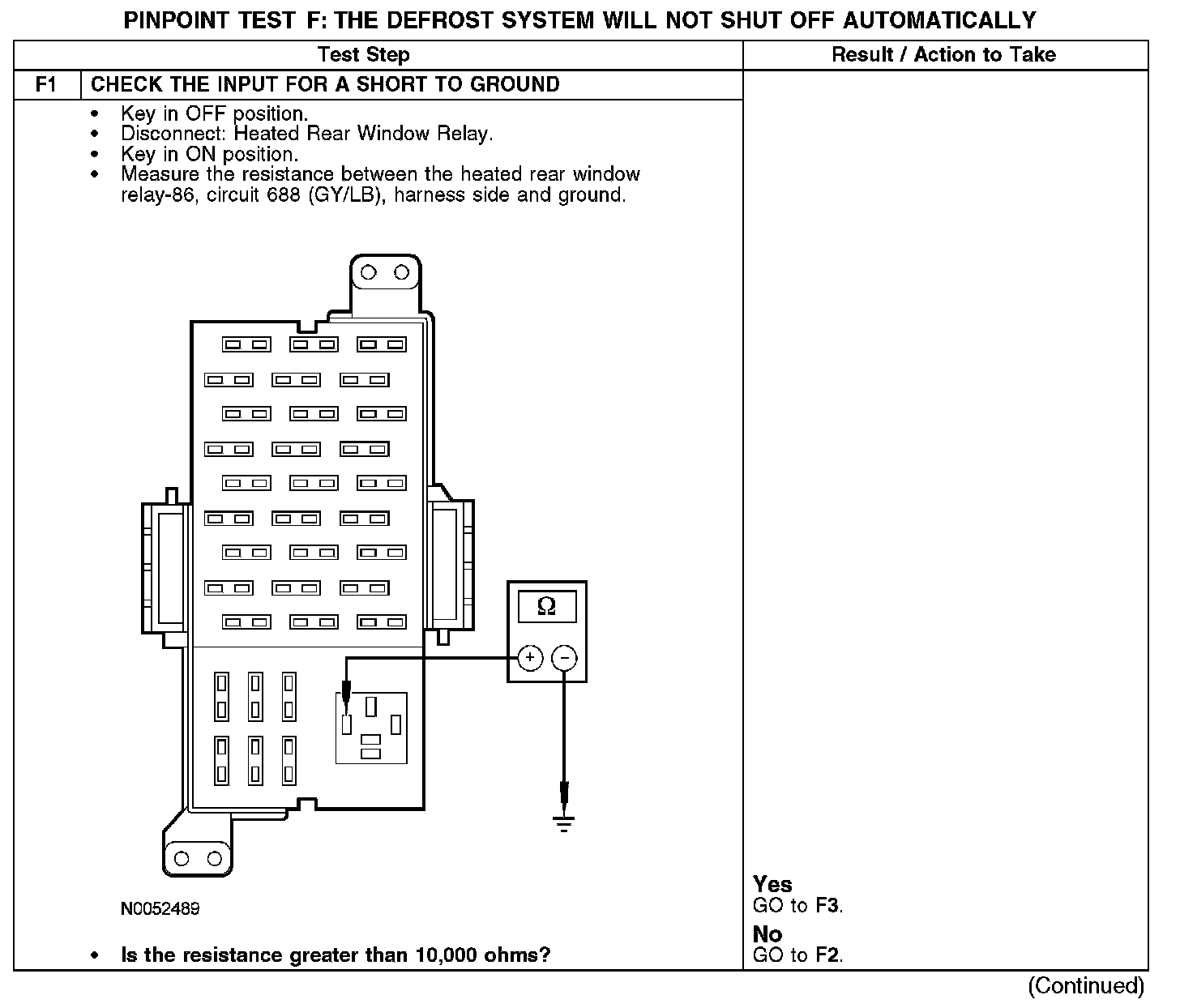 PINPOINT TEST F: THE DEFROST SYSTEM WILL NOT SHUT OFF AUTOMATICALLYF1: