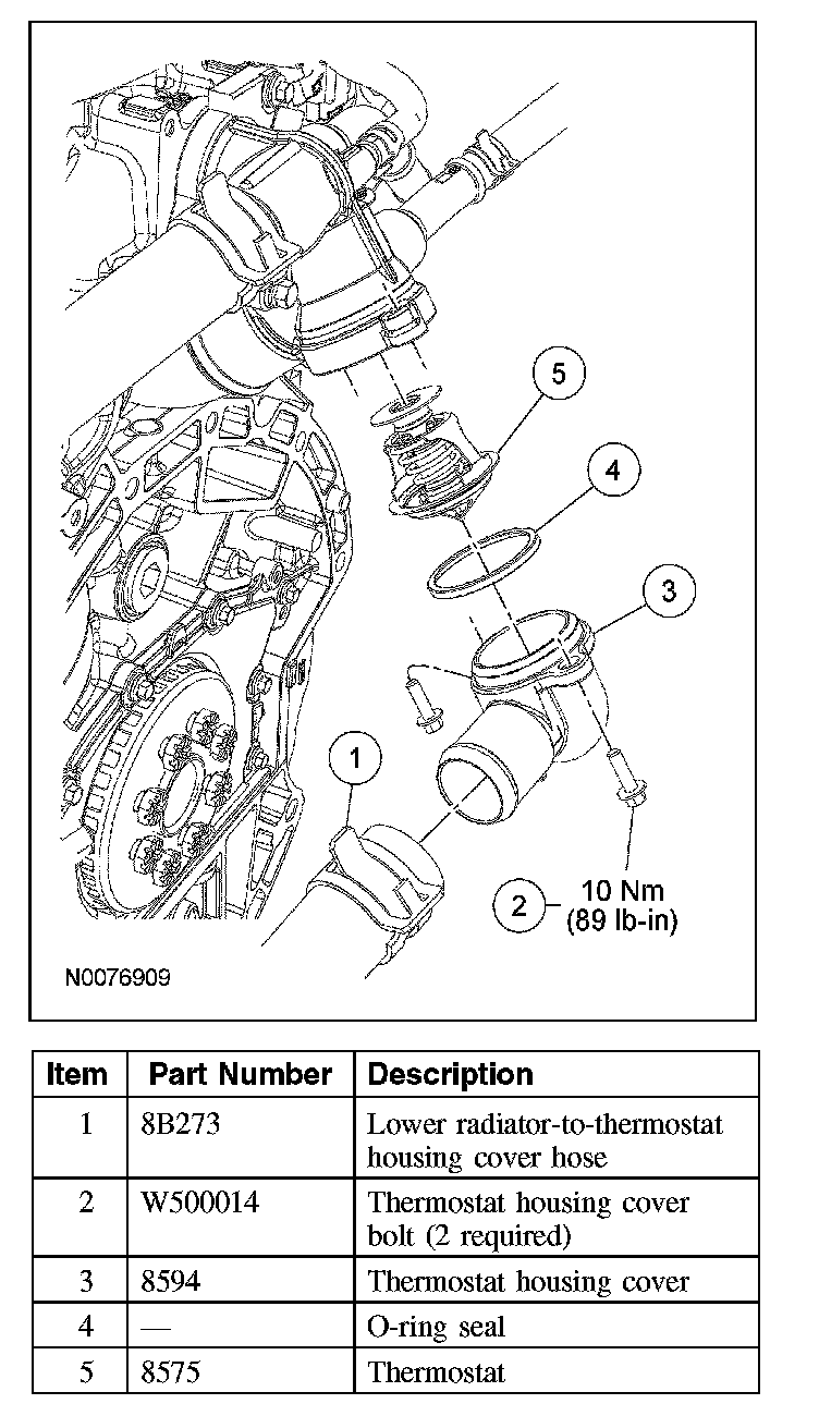 5. NOTE: Lubricate the thermostat O-ring seal with clean engine coolant.