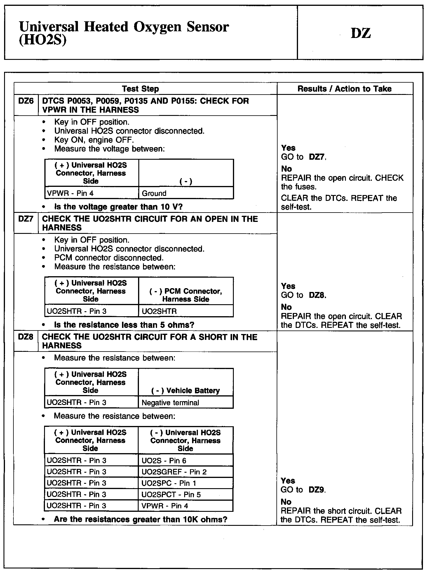 Tests DZ: Universal Heated Oxygen Sensor (HO2S)