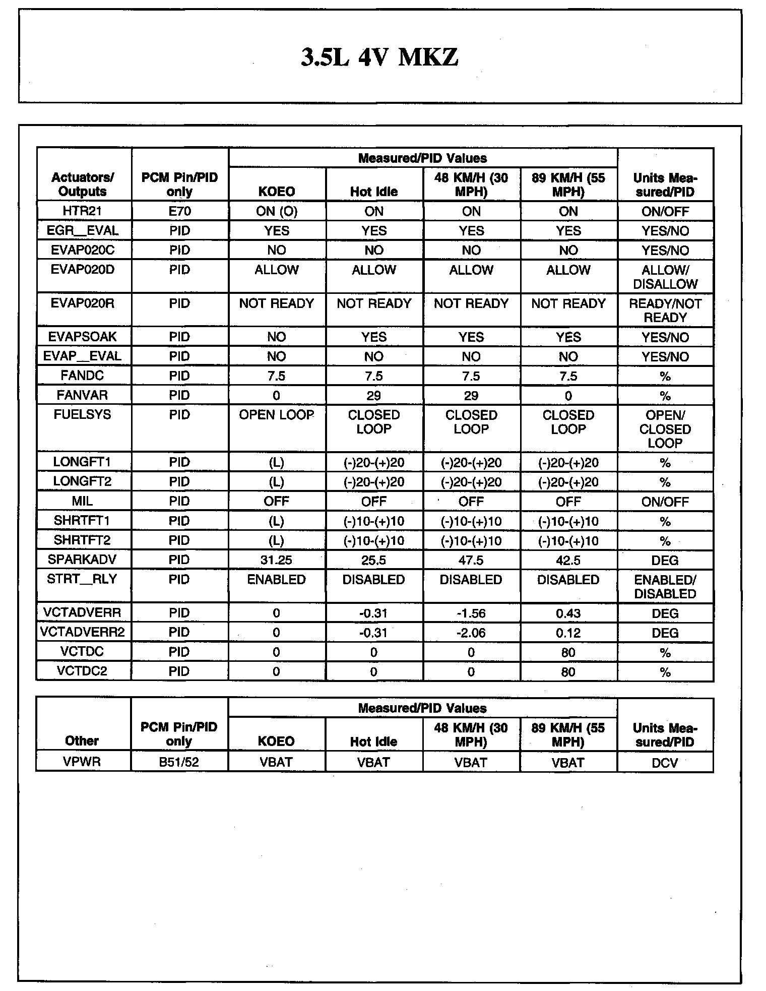 The Typical Diagnostic Reference Value Charts do not display fault parameter identifications (PIDs). These are PIDs which indicate a hard fault with the circuit. They display a value of YES or NO and are PIDs ending with the letter F.
