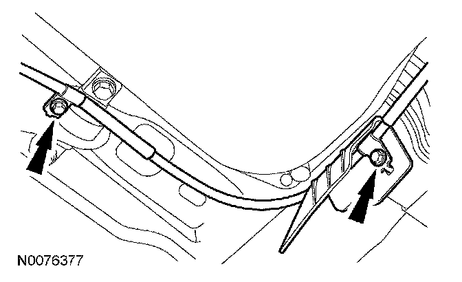 Remove the 2 bolts and position the LH rear parking brake cable assembly aside.