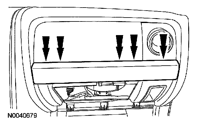 4. NOTE: Illustration shows the location of the 5 RH instrument panel trim panel nuts located inside of the instrument panel.