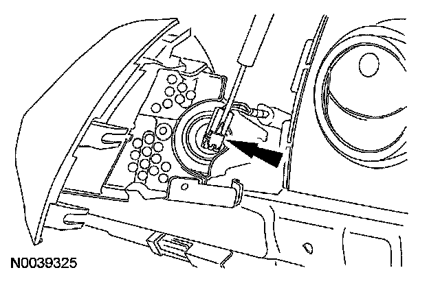 9. CAUTION: Do not pull the passenger air bag module electrical connectors out by the locking buttons. Damage to the locking buttons can occur.