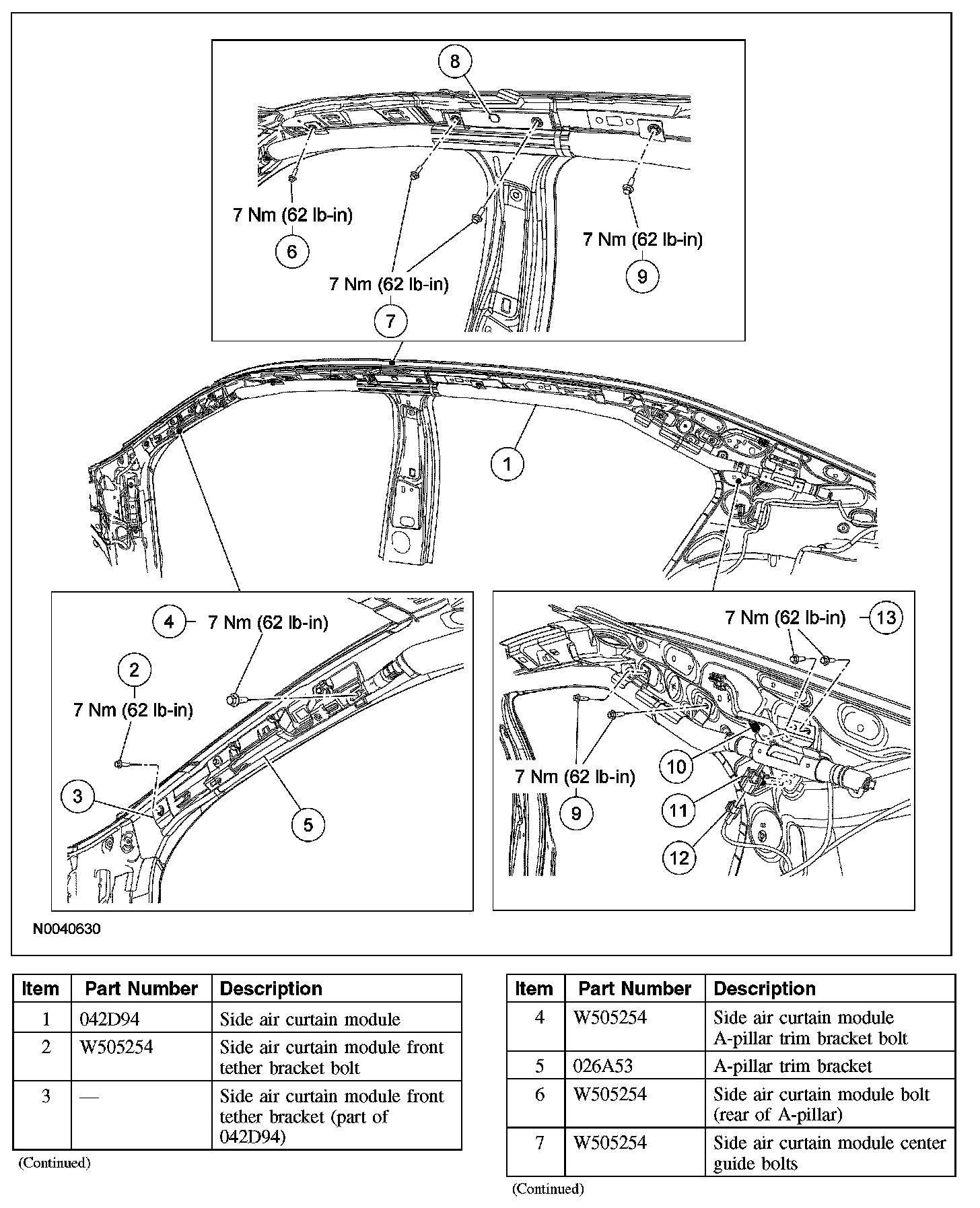 NOTE: Make sure all side air curtain module bolt holes line up with all the vehicles bolt holes.