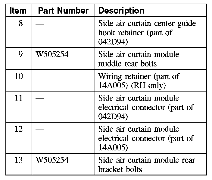 - Anytime the safety canopy or side air curtain module has deployed, a new headliner and new A-, B- and C-pillar upper trim panels and attaching hardware must be installed. Remove any other damaged components and hardware and install new components and hardware as needed. Failure to follow these instructions may result in the safety canopy or side air curtain module deploying incorrectly and increases the risk of serious personal injury or death in a crash.