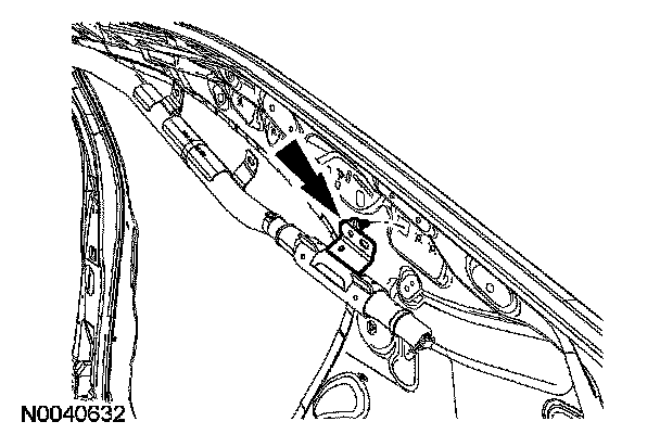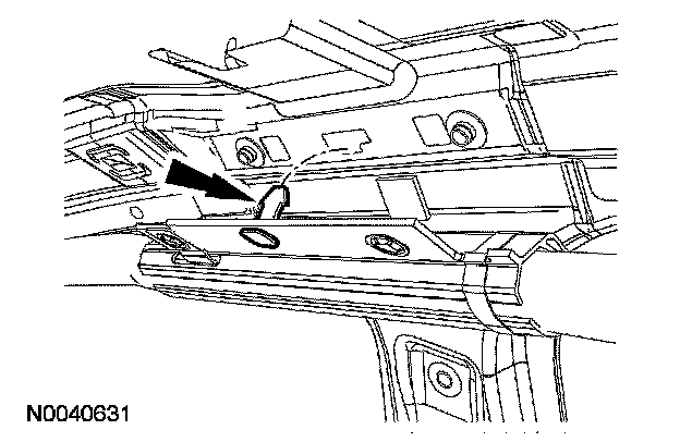 Remove the side air curtain module 2 center guide bolts. Detach the side air curtain module center guide hook retainer from the vehicle sheetmetal.