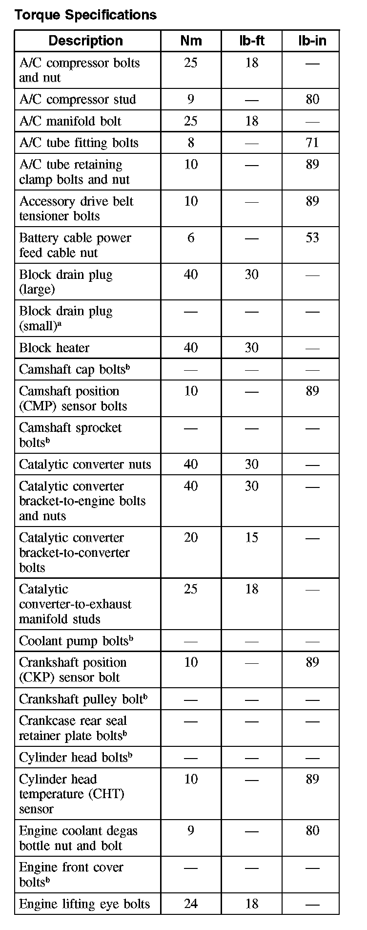 Torque Specifications