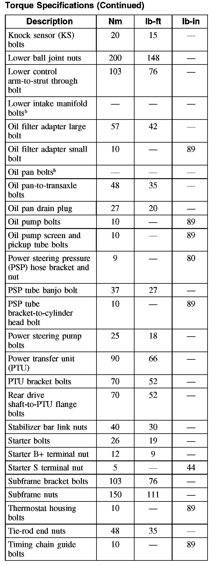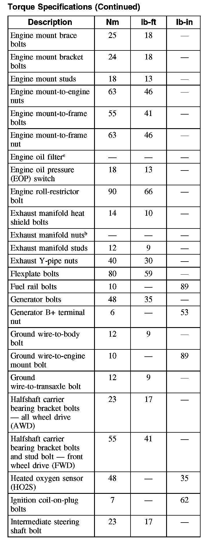 Torque Specifications (Part 4):
