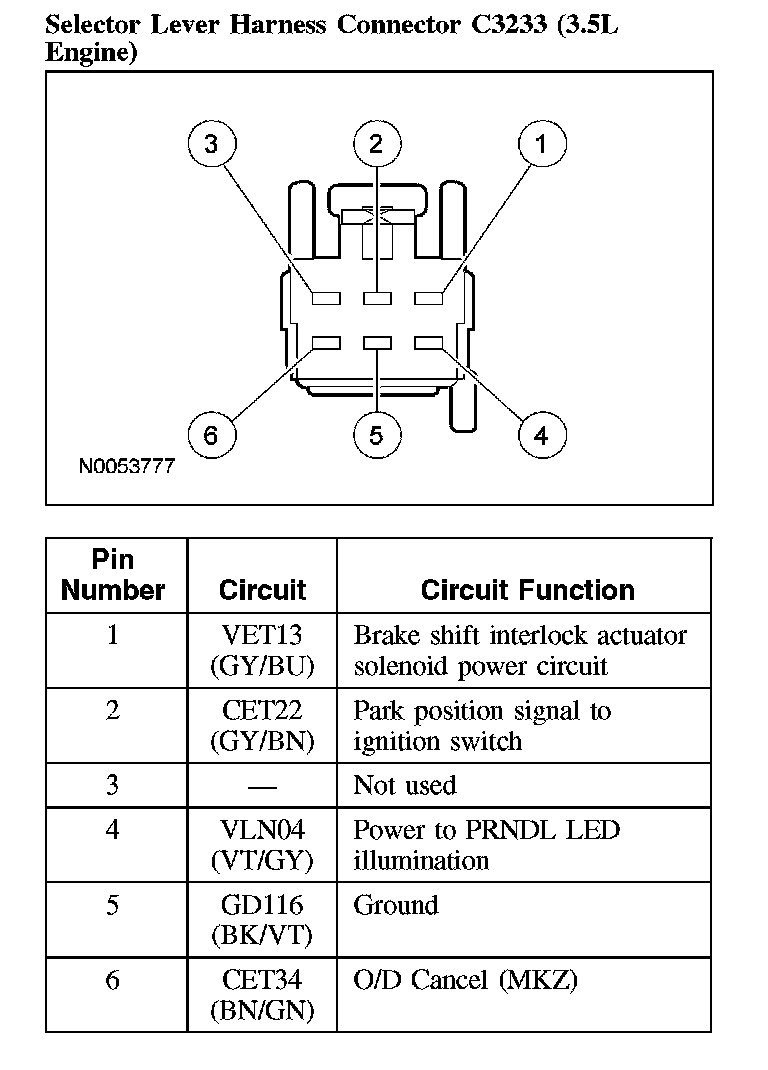 Selector Lever Harness Connector C3233 (3.5L Engine):
