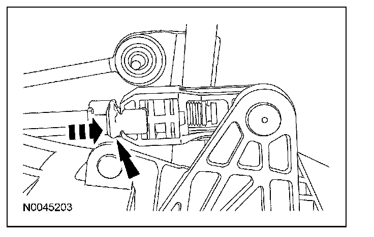 4. NOTE: If the cable lock is difficult to slide out, disconnect the shift cable from the stud, push the lock from the rear and reattach the shift cable to the ball stud.