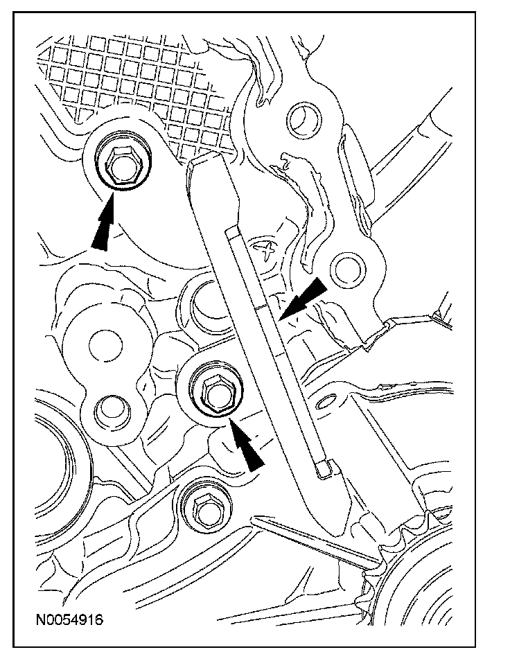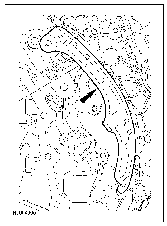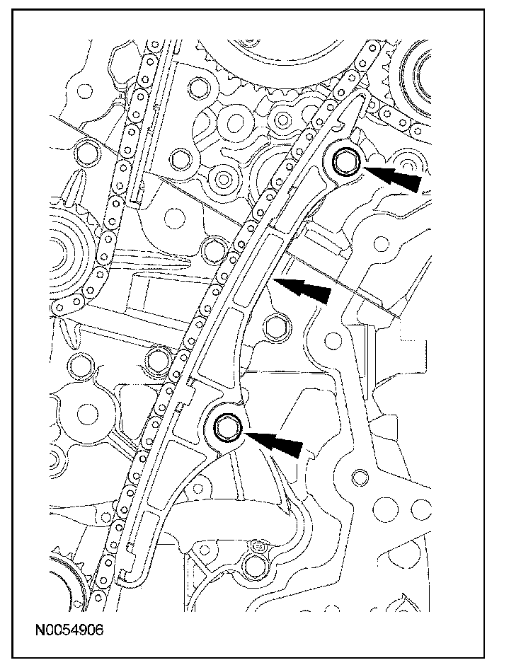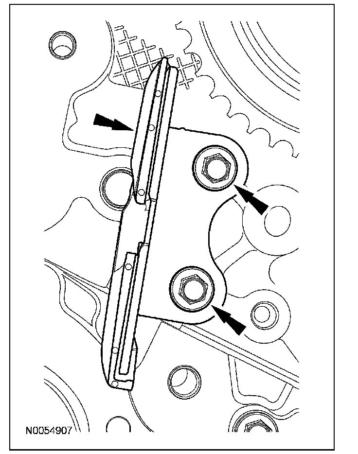 15. Install the lower LH primary timing chain guide and the 2 bolts.