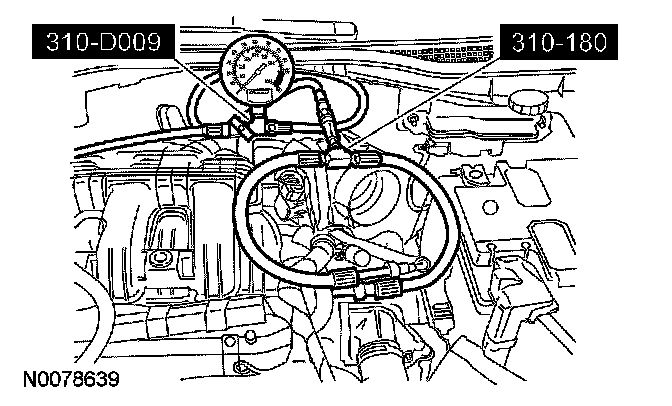 3. Install the Fuel Pressure Test Kit between the fuel jumper tube and the fuel rail.