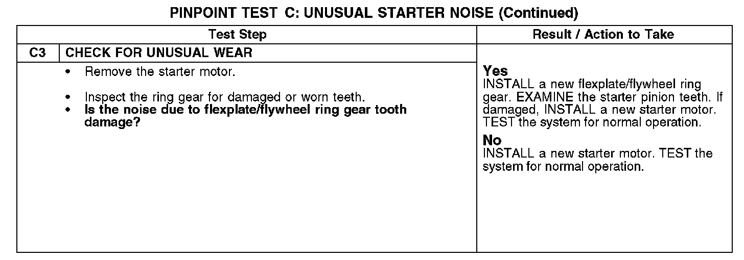 PINPOINT TEST C: UNUSUAL STARTER NOISEThis pinpoint test is intended to diagnose the following: