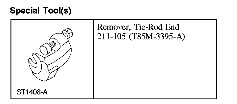 11. CAUTION: Do not use a hammer to separate the tie-rod end from the wheel knuckle or damage to the wheel knuckle can result.