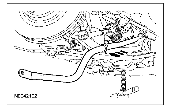 22. CAUTION: Before tightening the stabilizer bar bracket nuts, the suspension must be at the bushing fastener tightening position. Use a suitable jack to raise the suspension until the distance between the center of the hub and the lip of the fender is equal to 402 mm (15.83 in). This will prevent incorrect clamp load and bushing damage.