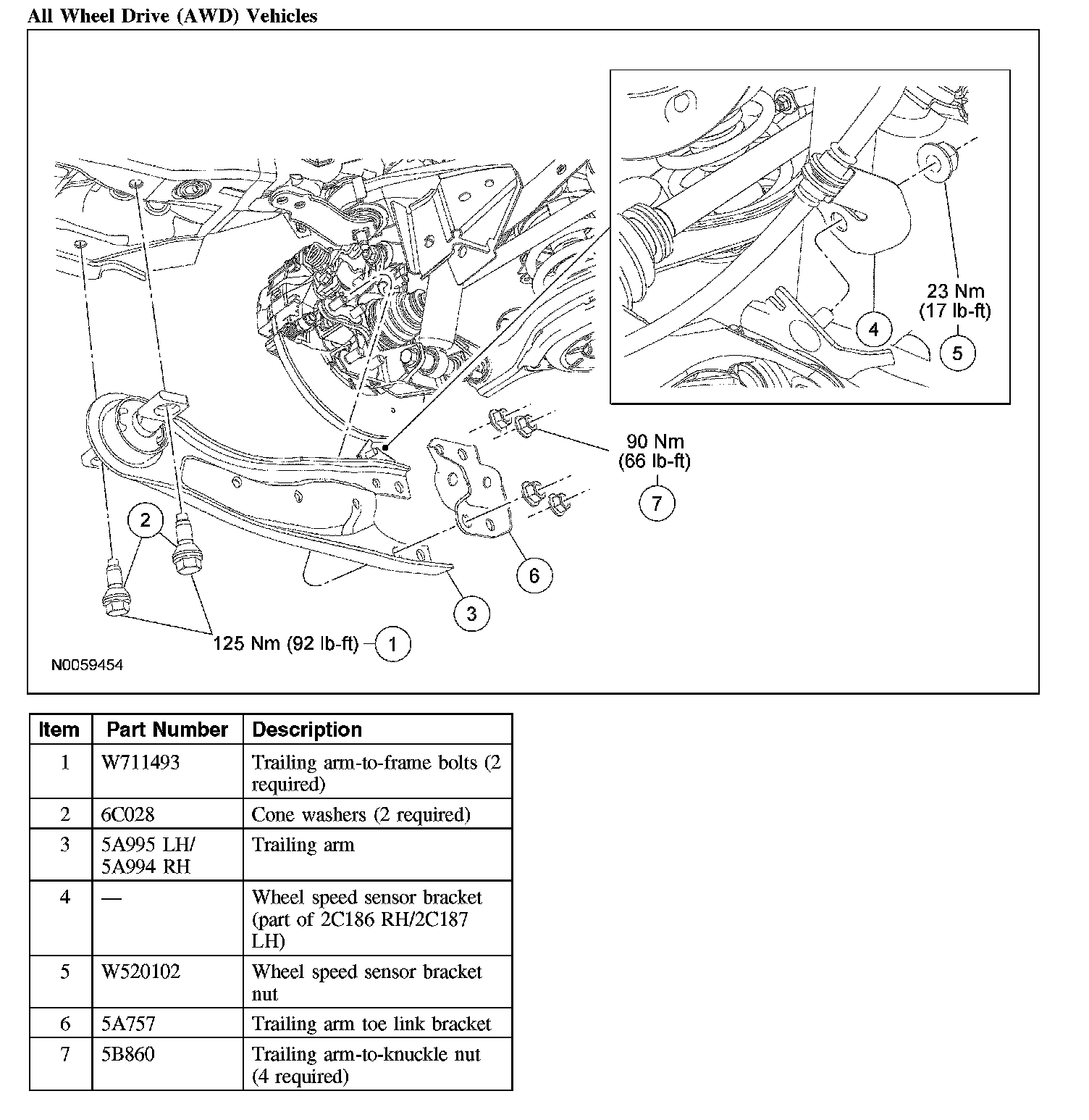 ^ To install, tighten to 110 Nm (81 lb-ft) with the suspension at the bushing fastener tightening position.