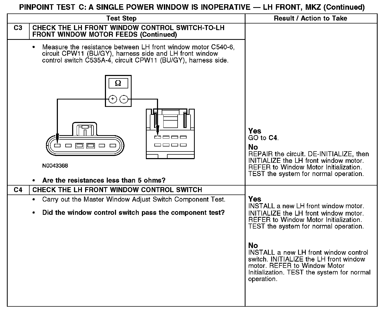 - A new LH front power window motor will not operate in one-touch up or one-touch down mode until initialized. Refer to Window Motor Initialization. Testing and Inspection