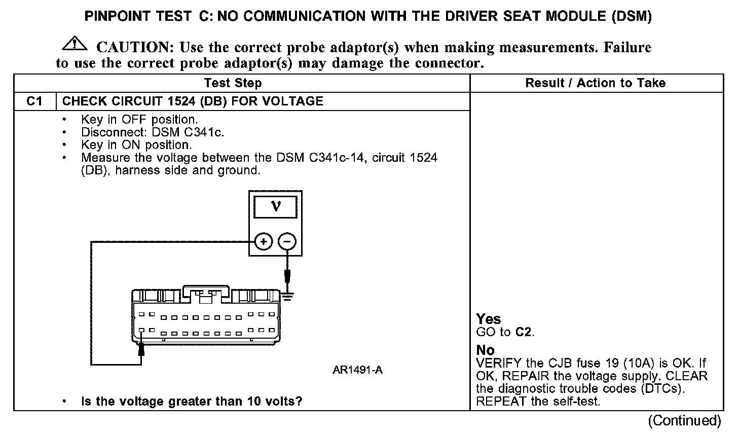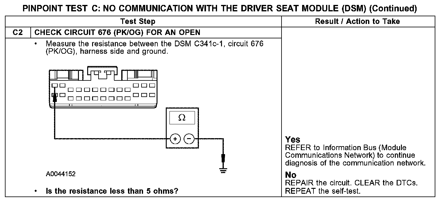 PINPOINT TEST C: NO COMMUNICATION WITH THE DRIVER SEAT MODULE (DSM)
