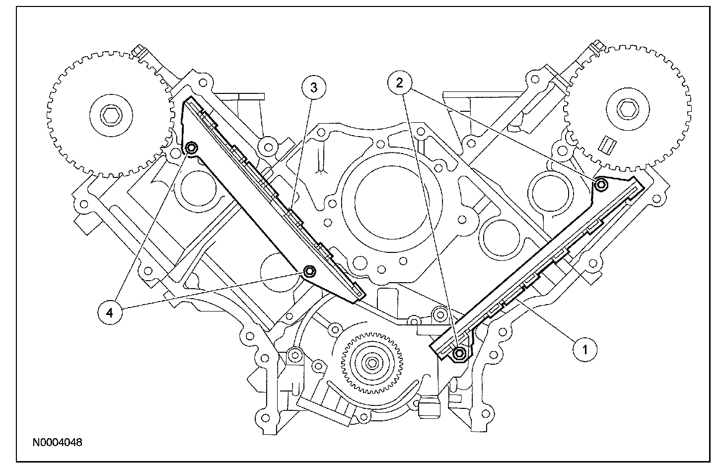 NOTE: RH timing chain removed for clarity.