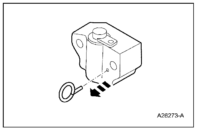 47. Remove the retaining clip from the LH timing chain tensioner.