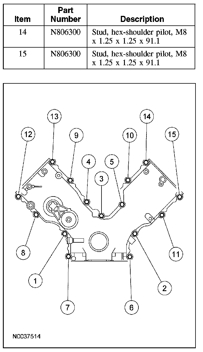 62. Tighten the 15 front cover fasteners in the sequence shown to 25 Nm (18 lb-ft).