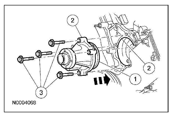 72. NOTICE: Do not rotate the coolant pump housing once the coolant pump has been positioned in the cylinder block. Damage to the 0-ring seal will occur.